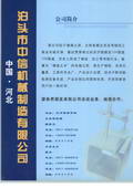 本公司技術力量雄厚,設備一流,工藝先進合理,管理規(guī)范,完全能滿足不同用戶的要求,我們公司的經(jīng)營理念是:品質(zhì)重于泰山、工作求實、產(chǎn)品求精。我們的宗旨是:以技術實力贏得市場,以誠實守信贏得用戶。泊頭市中信機械制造有限責任公司總經(jīng)理樊文濤歡迎各位領導、各屆朋友光臨指導,洽談合作。
